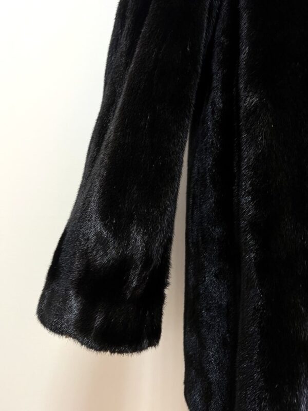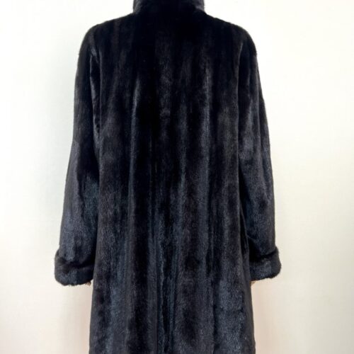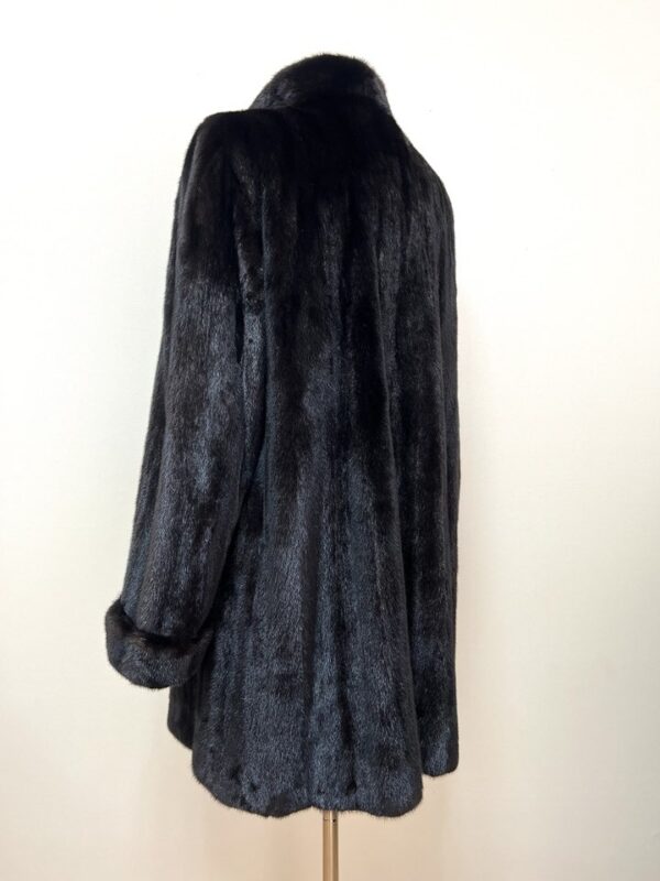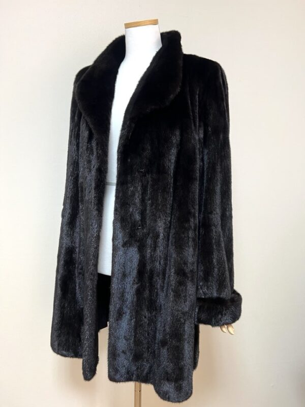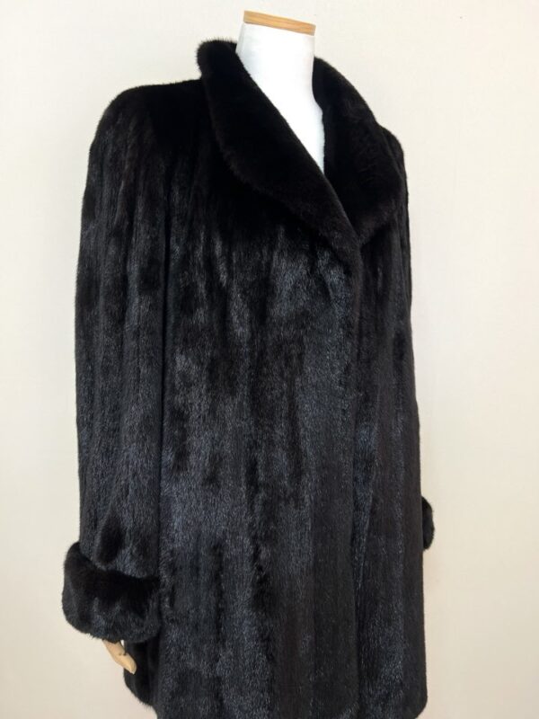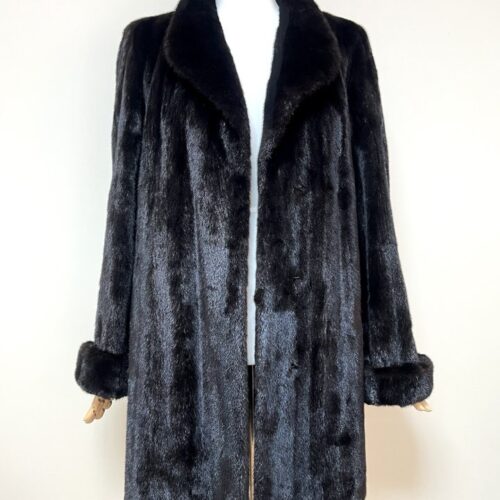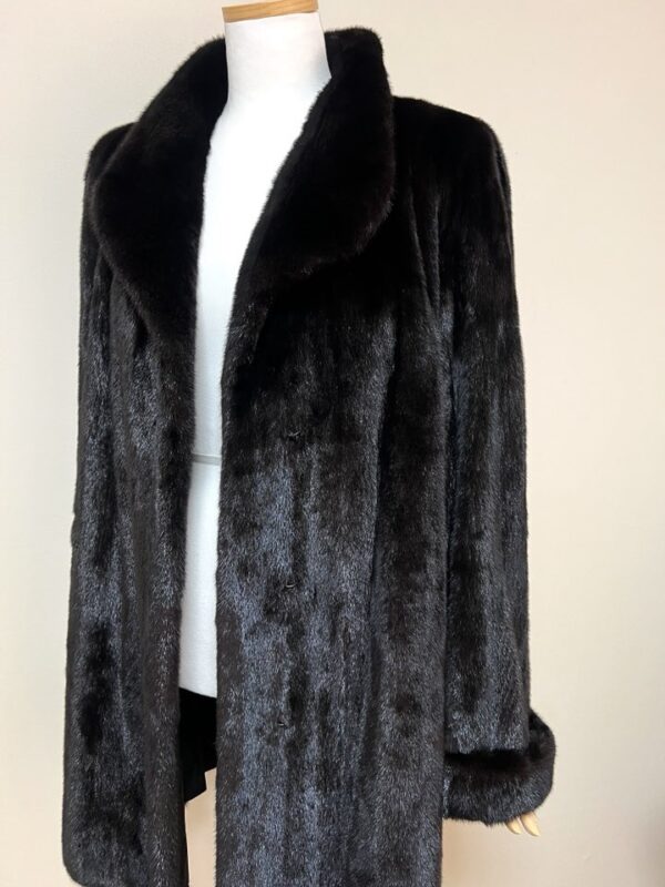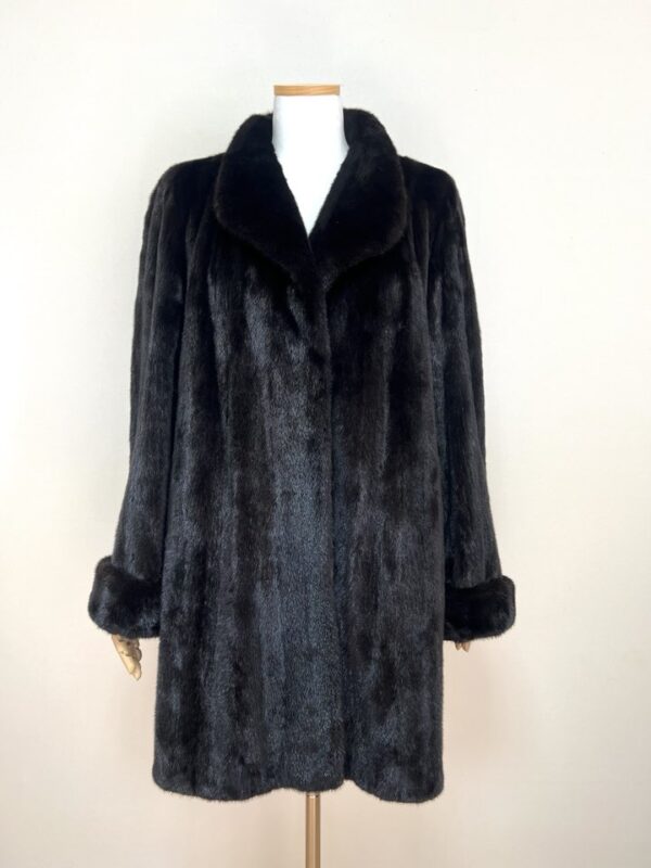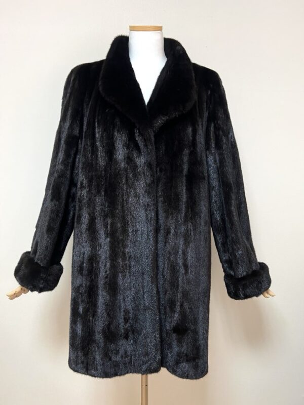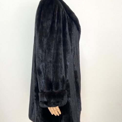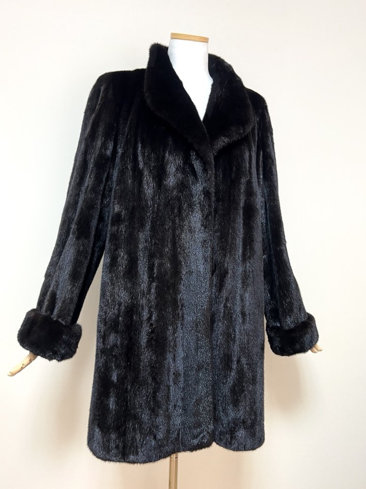 힙선을 적당히 덮어 주는 기장의 풀스킨 밍크 코트 입니다(중간길이 코트)