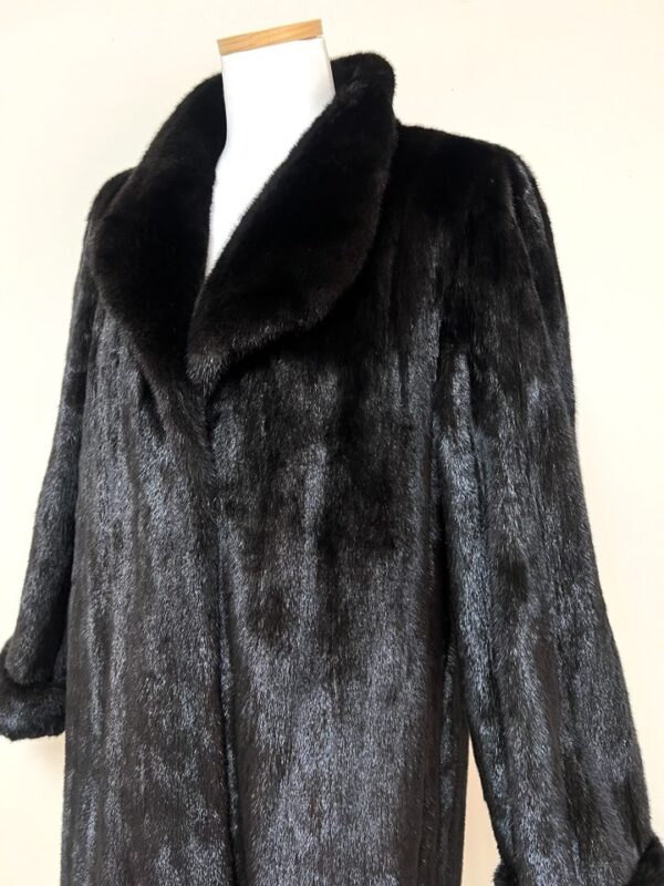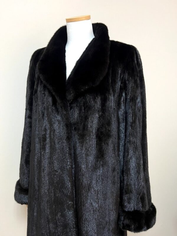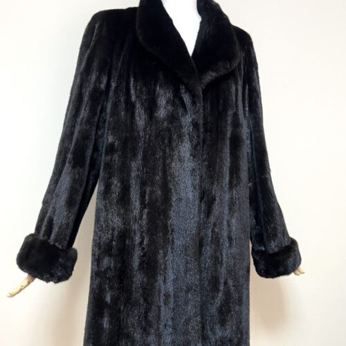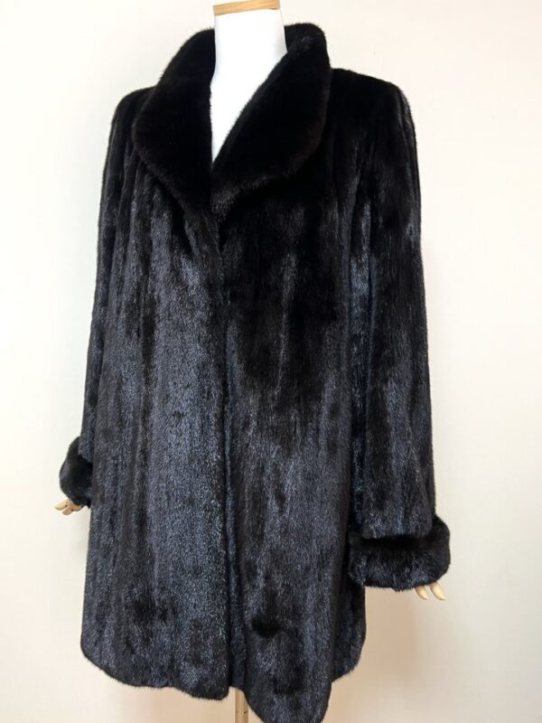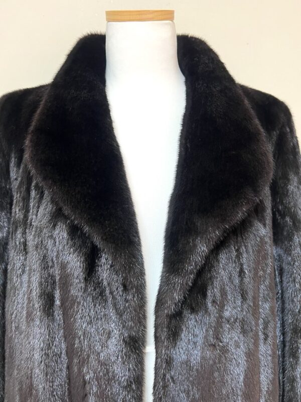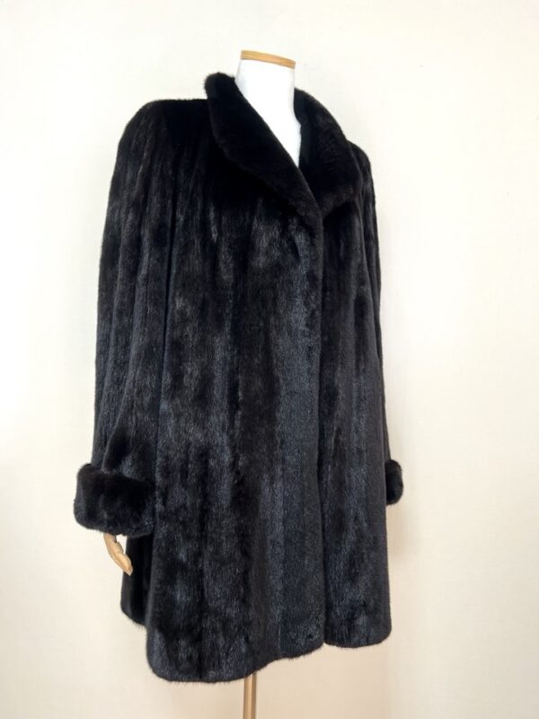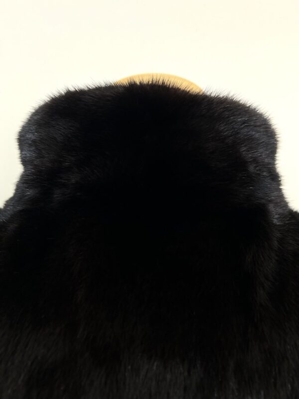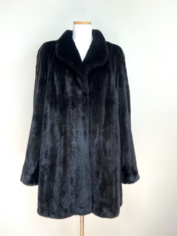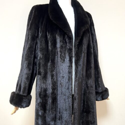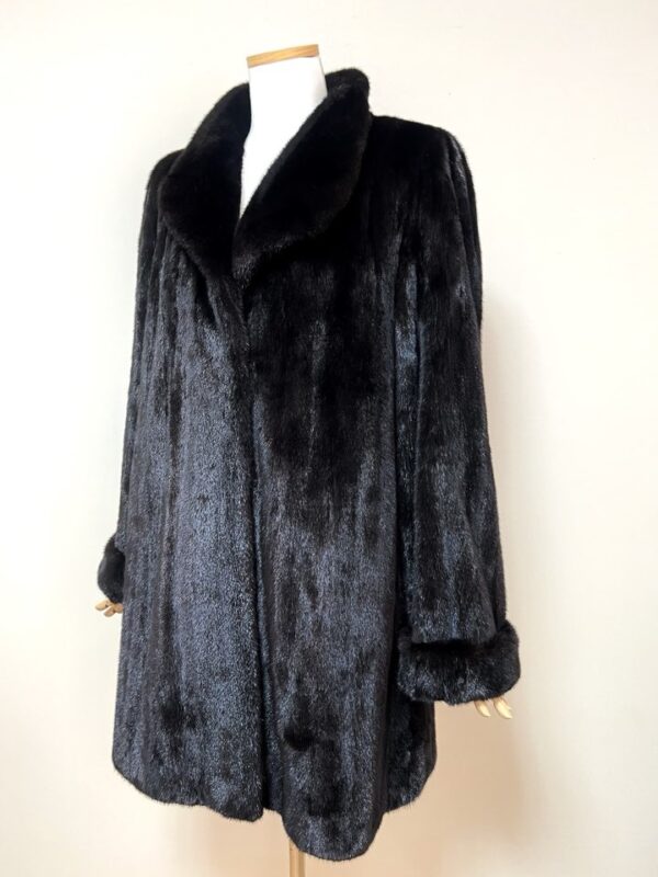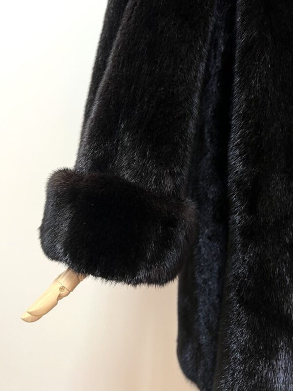 힙선을 적당히 덮어 주는 기장의 풀스킨 밍크 코트 입니다(중간길이 코트)