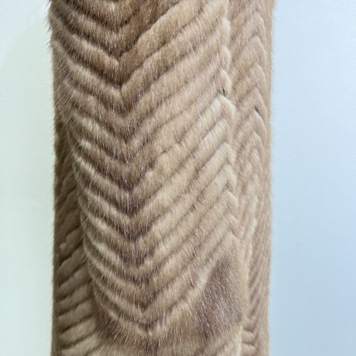 풀스킨 밍크에 쉐브론 무늬를 넣은 고난이도 기술의 디자인이며,